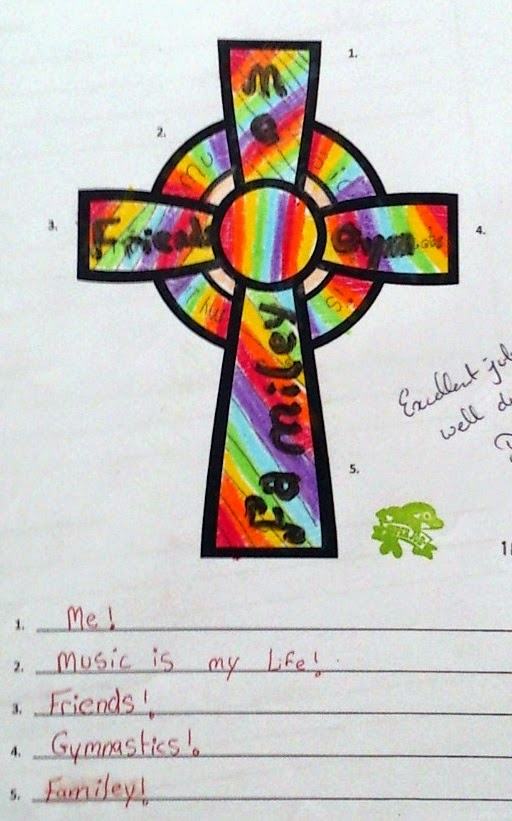We learned that sections on the cross depict scenes from the Bible. We designed our own crosses to depict significant scenes from our lives. Click this image to see some of our work: